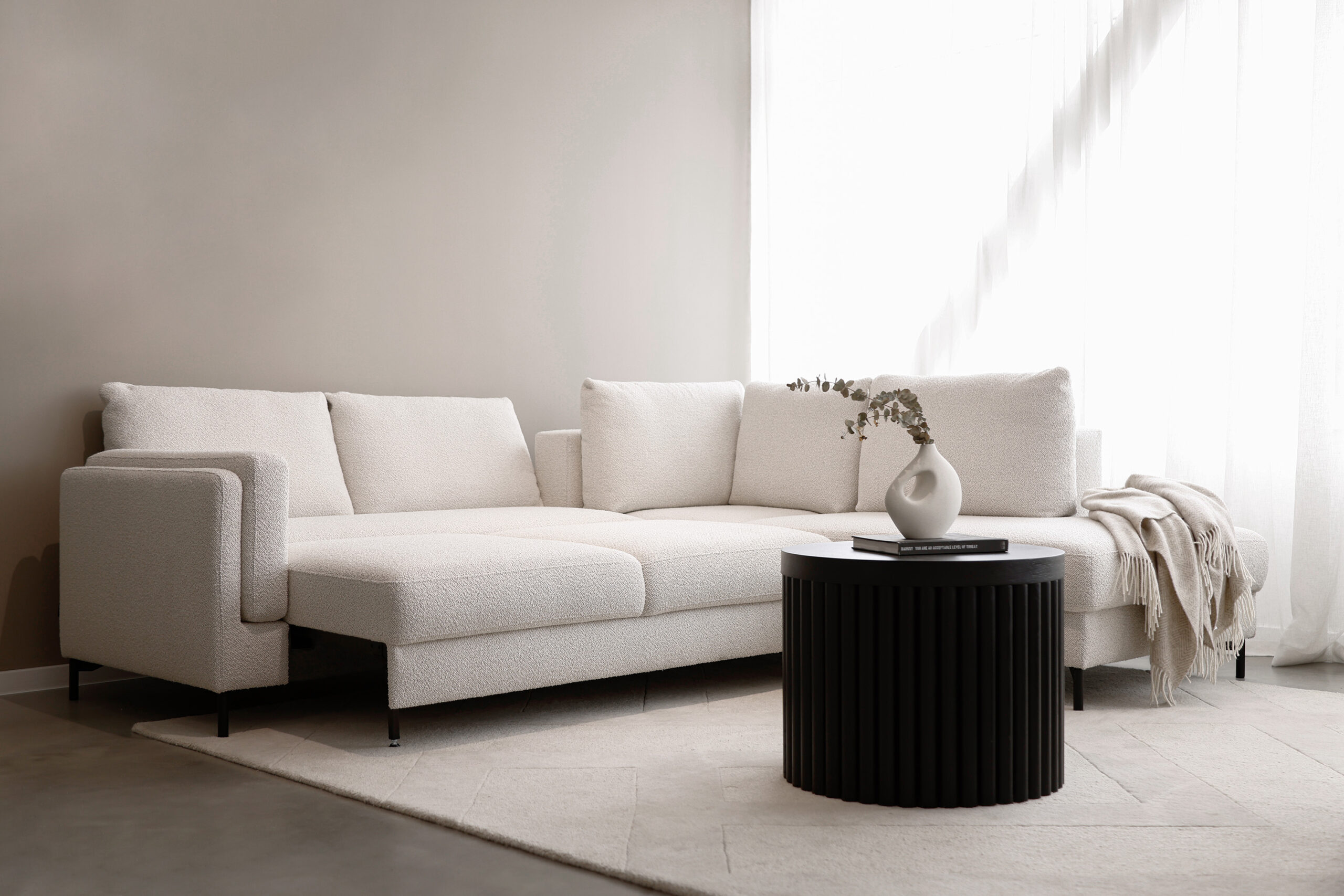 Sofa Hazel Vilmers – nowoczesny design z funkcją spania i pojemnikiem